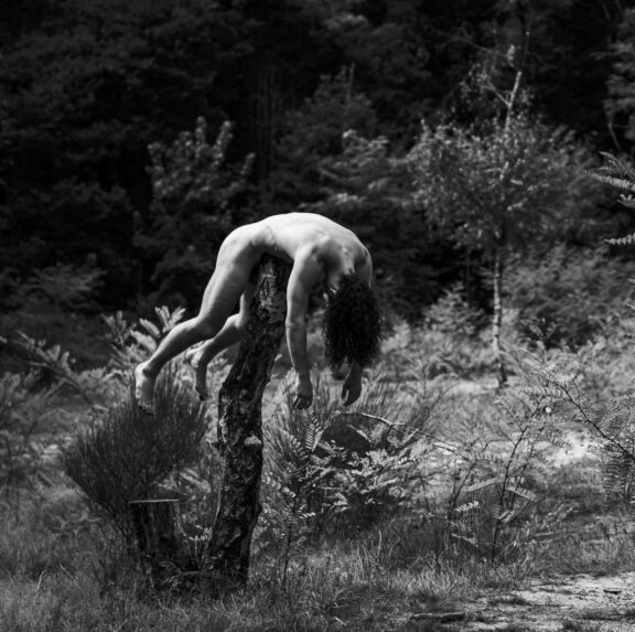 Je travaille depuis plusieurs années le partnering, le mouvement à deux, créer des possibilités qu’on ne peut s’offrir seul. Chercher des acrobaties avec/sur/dessus/dessous le corps du partenaire, comment deux corps s’imbriquent. Le travail du poids est central dans cette nouvelle création avec Aimé Rauzier, par le poids de l’autre et le poids des mannequins. Le partnering est appliqué à l’acrobatie, on prend en charge le poids de l’autre alors qu’un acrobate cherche à s’élever, à être léger, en apesanteur : oublier le poids. Notre corps garde enmémoire les corps qu’il rencontre. Qu’est-ce qui me reste d’un corps disparu ? Je souhaite m’emparer de cette question par l’acte de création. Car la relation avec nos morts se conjugue au présent. Au-delà du fait que l’acrobatie est le lien premier qui nous réunissent tous les quatre, c’est aussi un élan. Sauter, s’élever, basculer, chuter. Chuter à deux mais se relever à 4. Par notre langage acrobatique, fait de percussions, d’impulsions, de recherche d’élévation, nous allons avec nos morts au plateau, avancer avec leur poids.